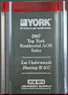 Over the years Underwood's has won several awards in residental replacement systems. In 2007 we were awarded 1st place in residental replacement for the South Texas and Southwest Lousiana area for York equipment.